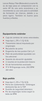 Lancer Rotavator La serie HL tiene un peso bajo en comparación con la serie HP. Es una serie económica y se recomienda encarecidamente su uso solo para actividades de poteo, debido a su peso ligero. También es bueno para huertos y viñedos.
